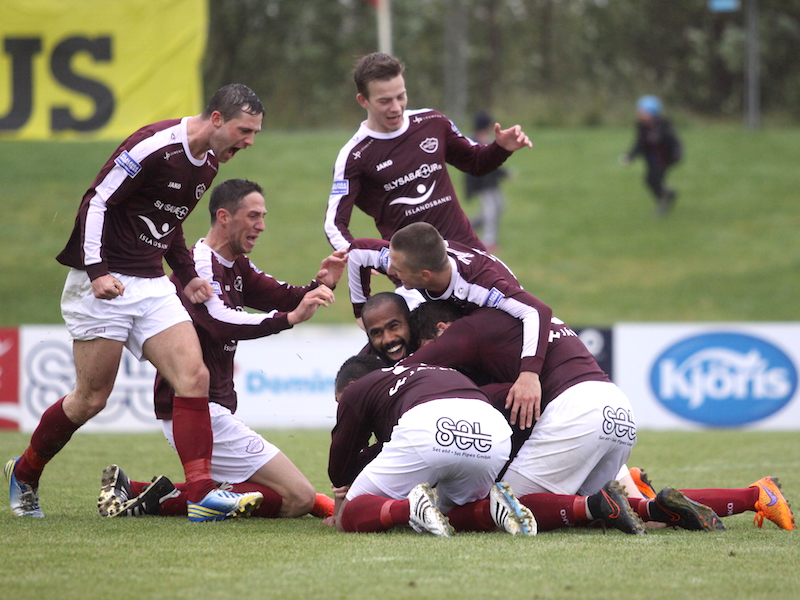 „Það kom ekki annað til greina en að taka þrjú stig í dag. Færin okkar voru kannski ekki mjög mörg en bæði mörkin voru mjög flott og við kláruðum þetta sannfærandi,“ sagði Vignir og bætti við að þó sigurinn hefði verið mikilvægur þá væri liðið ekki sloppið við fall.