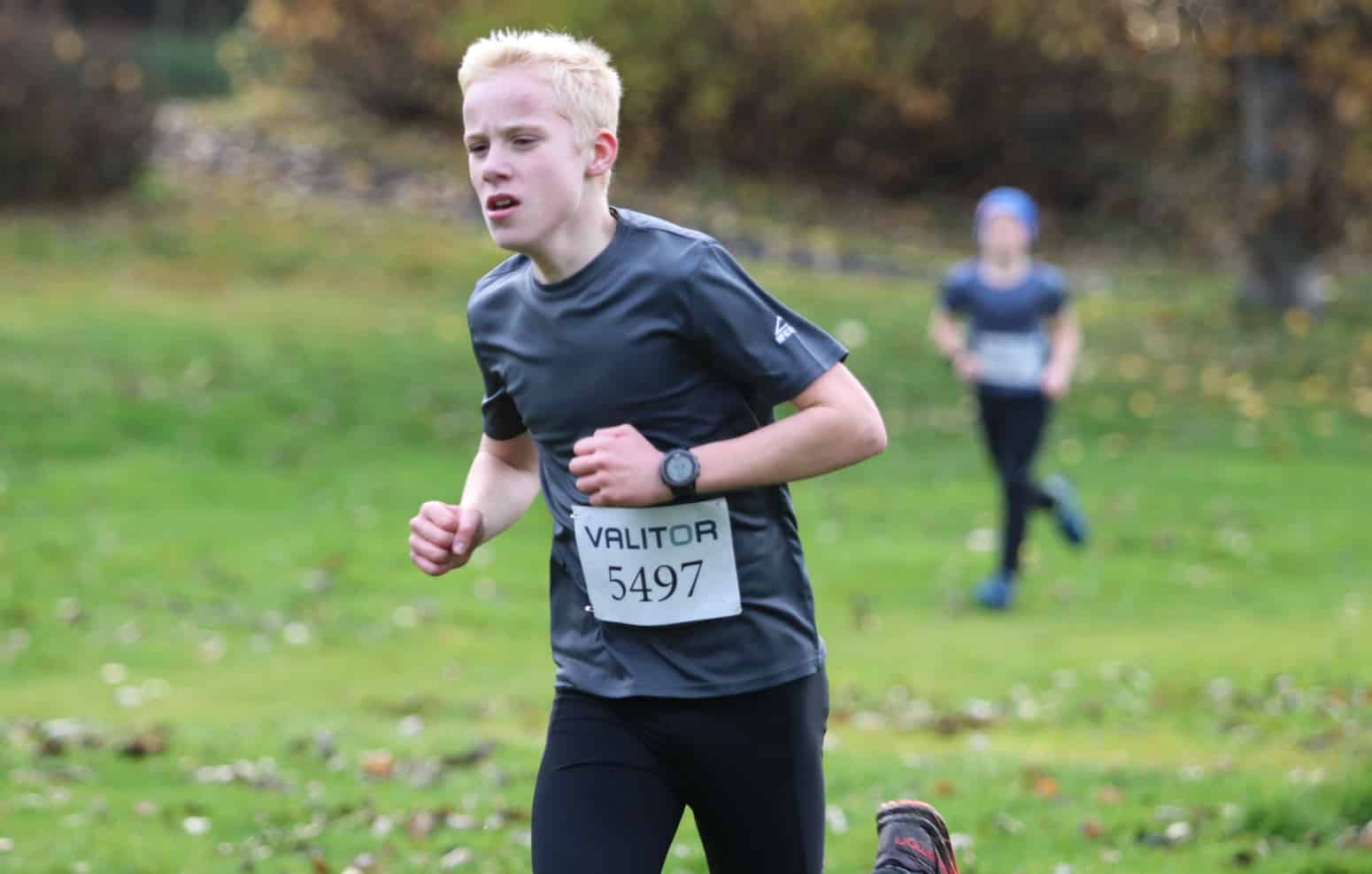 Sveinn Skúli sigraði í sama flokki í fyrra og varði þar með Íslandsmeistaratitil sinn. Hann hljóp kílómetrana fjóra á 8:22 mín en hlaupið er í hæðóttri braut í Laugardalnum og er undirlagið ýmist gras, trjákurl eða möl.