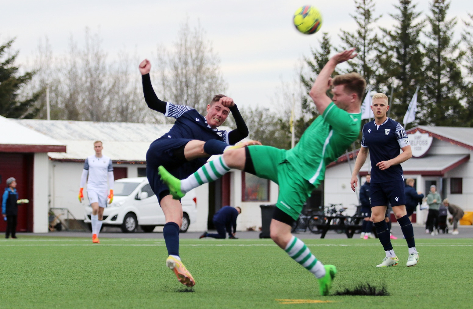 Bæði lið áttu góðar sóknir á lokakaflanum en þegar leið á áttu Árborgarar meira á tanknum og á fyrstu mínútu uppbótartímans náði Þorsteinn Daníel að skora sigurmarkið með frábæru skoti úr teignum.