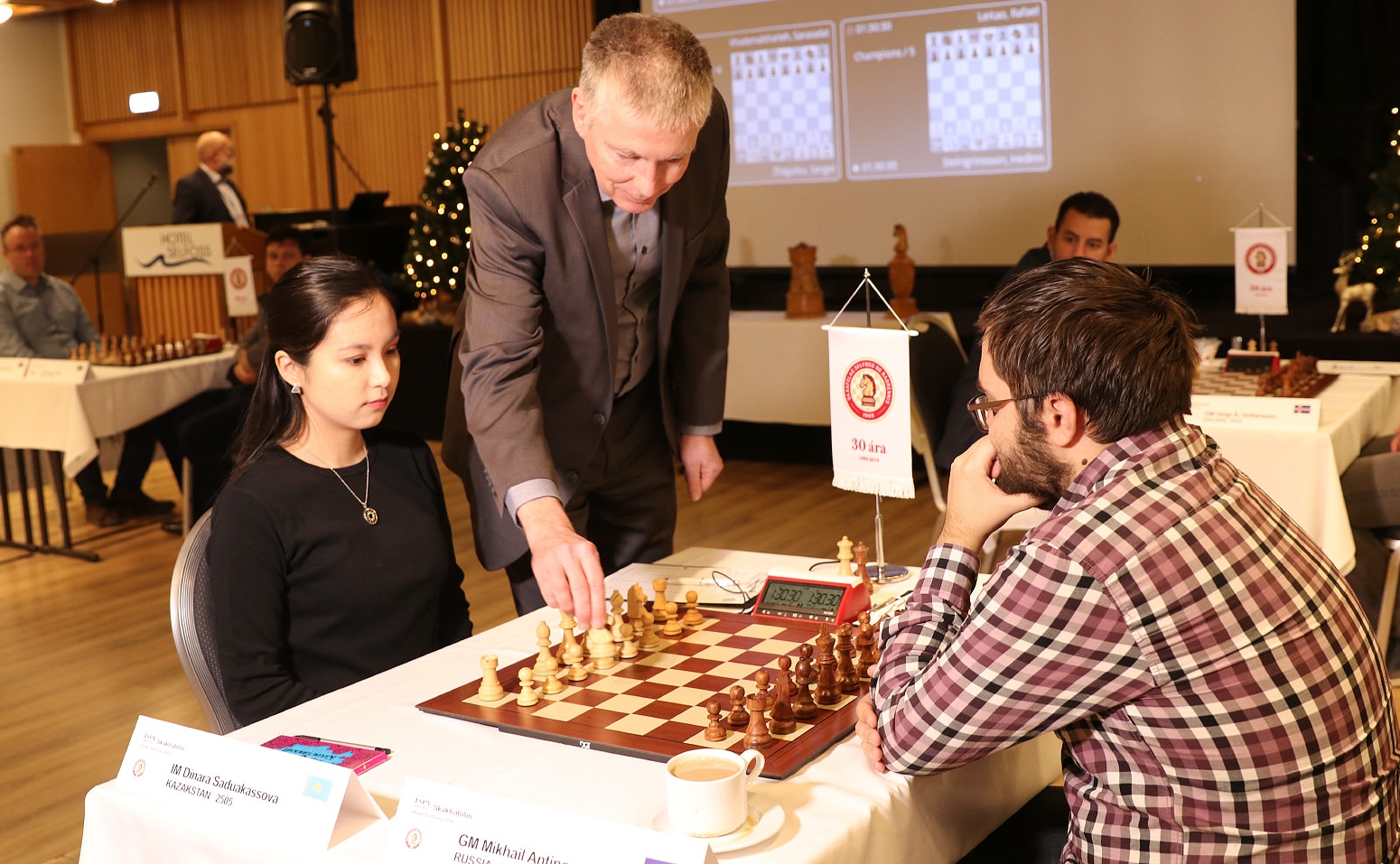 Antipov sigraði Dinara Saduakassova en skákin hófst á stórsókn Saduakassova. Taflið snerist hins vegar í höndunum á henni eftir þrettán leiki og Rússinn tók yfirhöndina og hélt henni til loka.