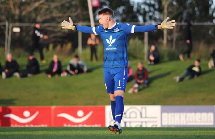 Grótta sótti mun meira í seinni hálfleiknum en Ægisvörnin stóð vaktina vel og Stefán Þór Hannesson átti góðan leik í markinu.