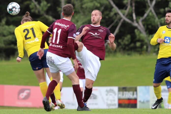 Þetta var hörkuleikur í belgingnum á Reykjanesinu. Selfyssingar léku manni færri í sextíu mínútur en Kenan Turudija lét reka sig af velli um miðjan fyrri hálfleikinn eftir að hafa lent í útistöðum við Ragnar Þór Gunnarsson, fyrrum leikmann Selfoss.