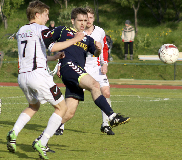 Árborg sótti í sig veðrið síðasta korterið og fékk góð tvö færi. Andy Pew átti annan hættulegan skalla, framhjá í þetta skiptið og skömmu síðar slapp Guðmundur Sigfússon innfyrir en skaut framhjá í dauðafæri.
