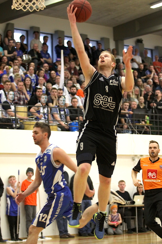 Hann sagði einngi að spennustigið hafi verið hátt fyrir leikinn. „En ég held að menn hafi aldrei verið jafn tilbúnir í neinn leik eins og í kvöld. Við vorum mjög vel peppaðir fyrir þessa áskorun. Það sýndi sig líka. Hver einn og einasti leikmaður var að leggja sig fram. Arnþór [Tryggvason] kom t.d. inná í blálokin og skoraði stóra körfu. Þetta sýnir að menn eru að spila fyrir hvern annan og menn þekkja sitt hlutverk í liðinu. Það var þannig sem við komumst í gegnum þessa seríu,“ sagði Ari sem stefnir á að leika með FSu í efstu deild á næsta tímabili.