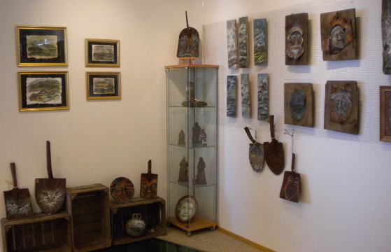 Ný sýning hefur verið opnuð „Við sprunguna“ á Bókasafninu í Hveragerði. Þar sýnir Sigurbjörg Eyjólfsdóttir myndir og handverk af ýmsum toga, m.a. leirstyttur og myndir málaðar á tré og járn.