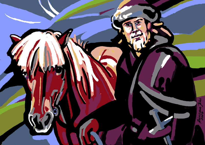 Í Ásgarði er jafnframt sýning á teikningum Þórhildar Jónsdóttur á persónum úr Njáls sögu.