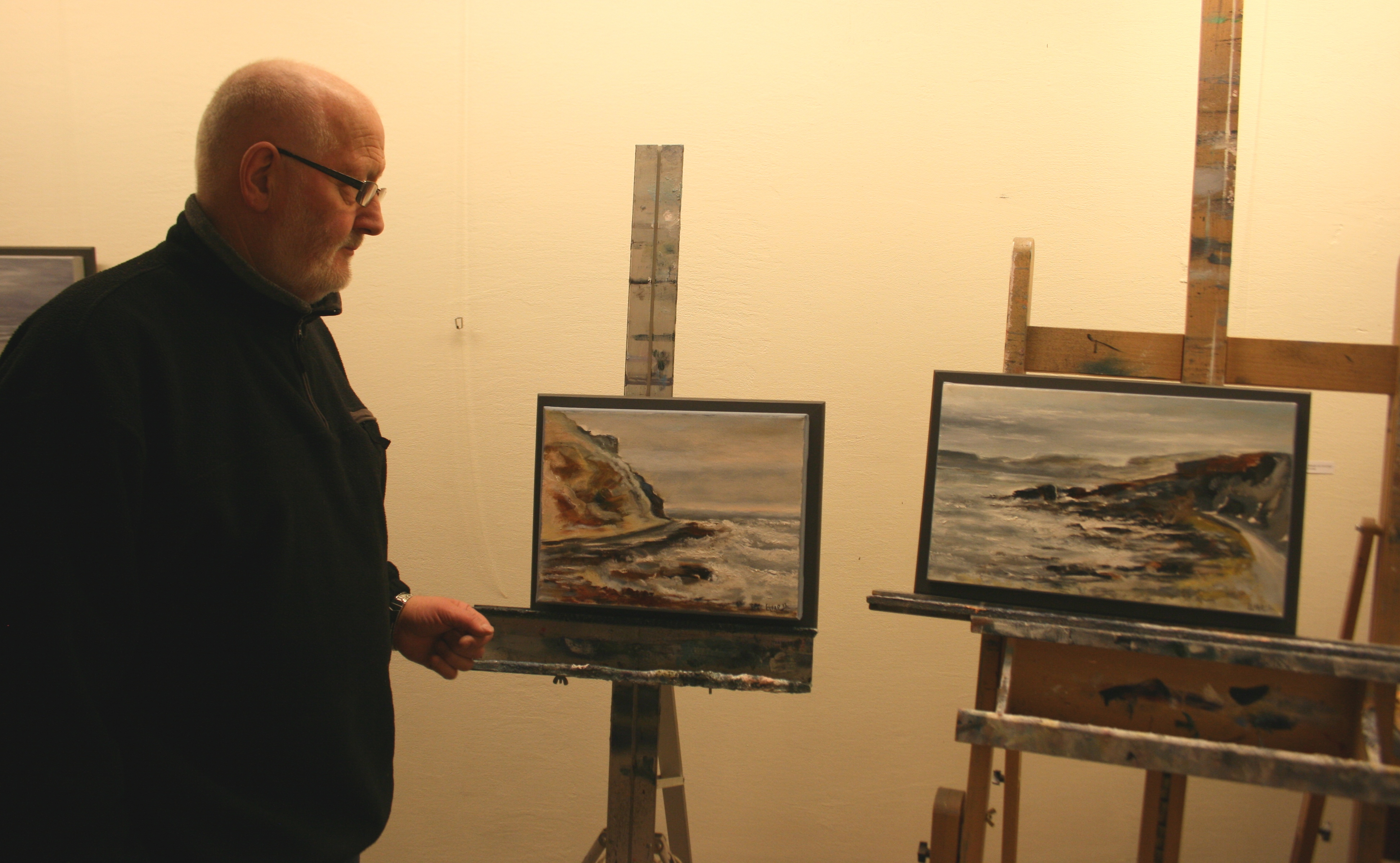 Elfar Guðni dvaldi í haust í þrjár vikur í Mannlífs- og menningarsetri Önfirðingafélagsins að Sólbakka 6 á Flateyri og málaði vestfirska náttúru.
