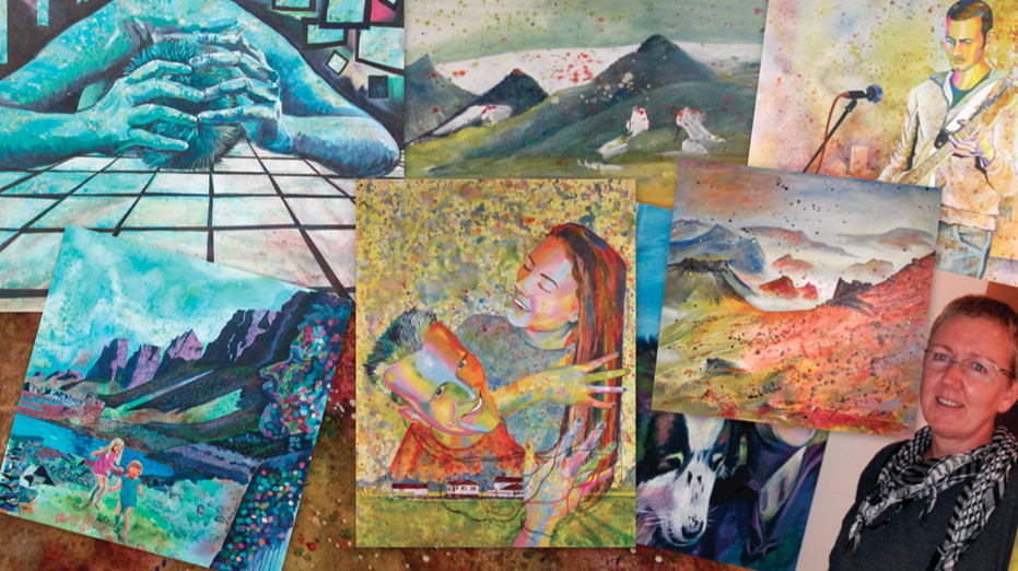 Myndirnar voru málaðar í námsorlofinu bæði í Danmörk og hér á landi.