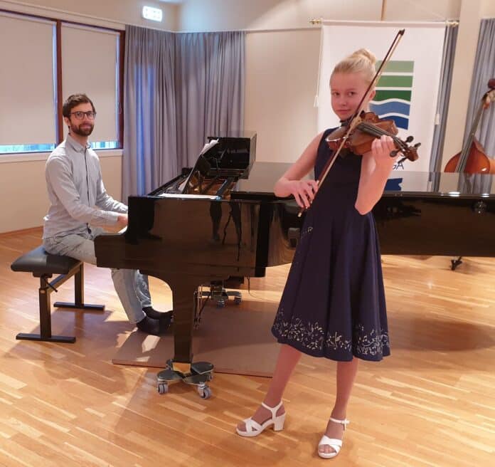 Hér fyrir neðan má sjá Eyrúnu Huld og Einar Bjart flytja Salut d’amour.