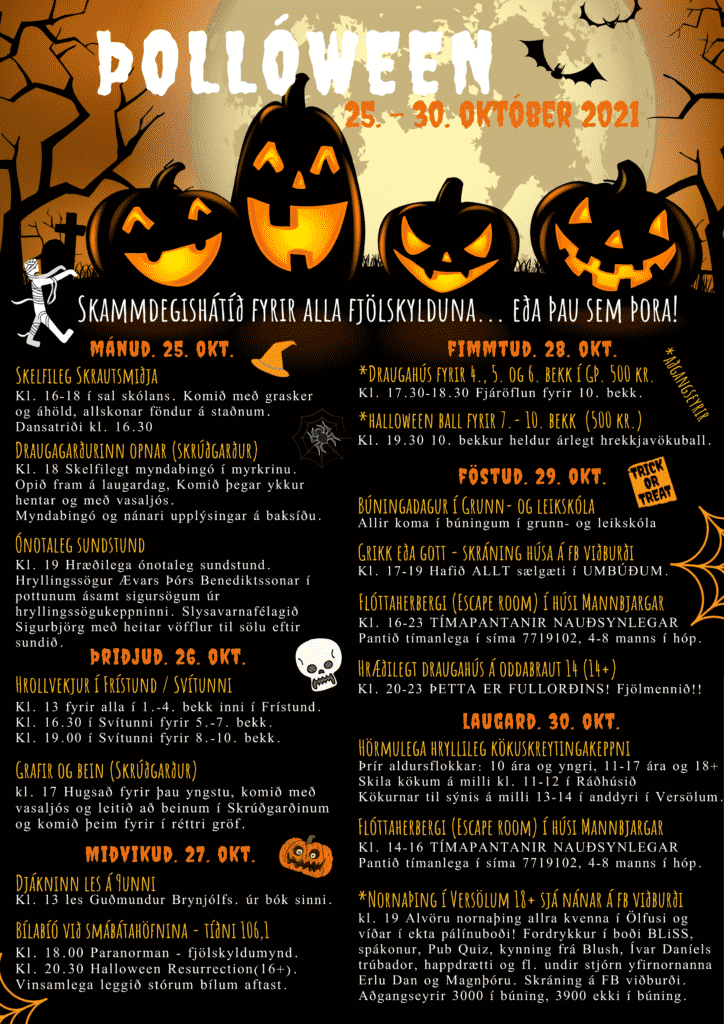 Nánari upplýsingar má finna á Facebook og Instagram síðum Þollóween.