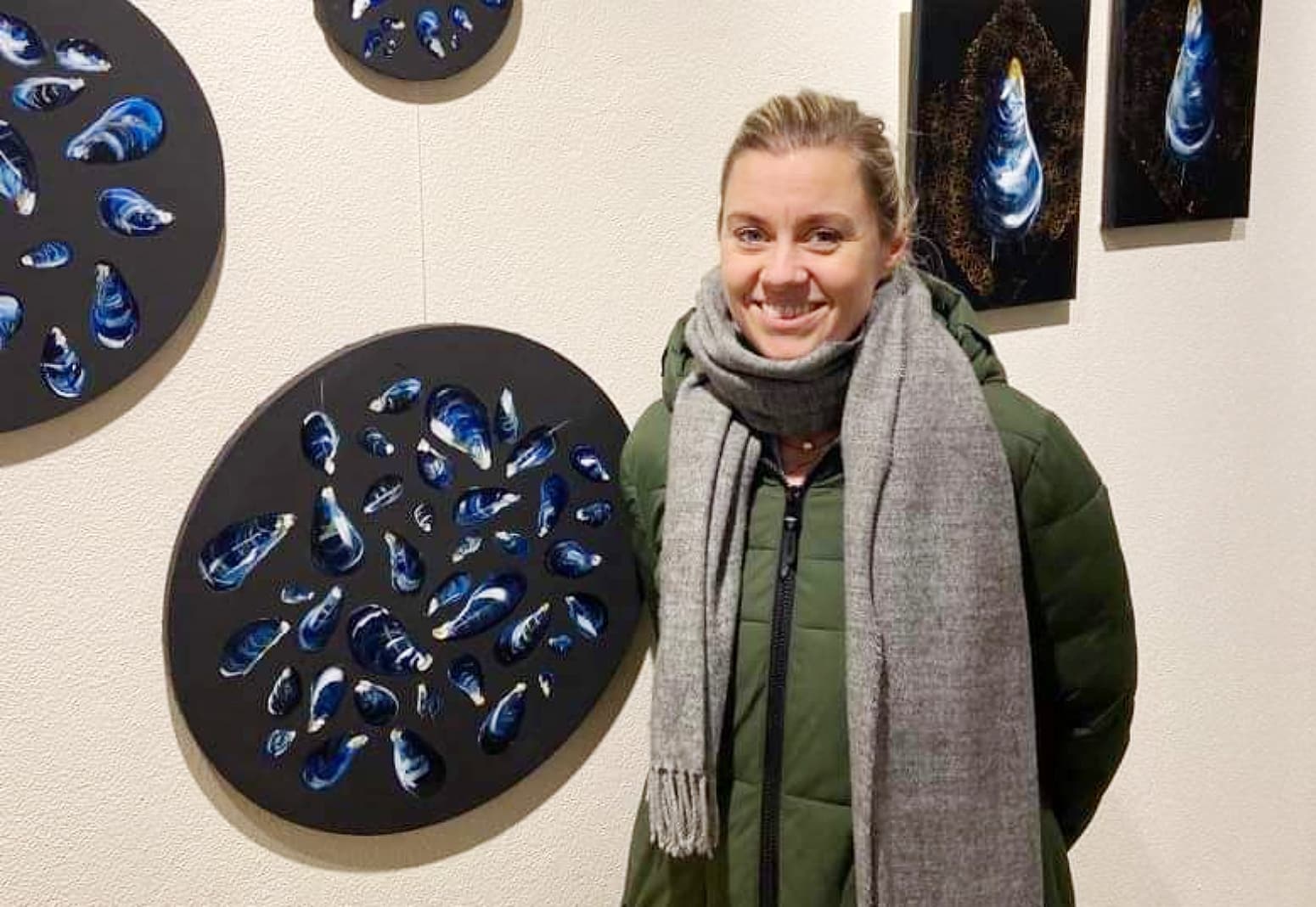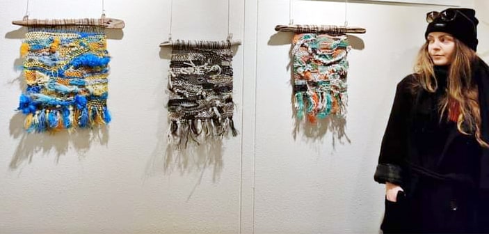 Katrín Lilja einbeitti sér að endurnýtingu og umhverfisvernd í Listaháskólanum og er vefnaður úr veiðarfærum hennar hluti sýningarinnar, á meðan Margrét Elfa hugar að hafinu, konunni og skelinni í málverkum sínum.