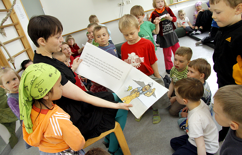 Krakkarnir á Álfheimum voru ánægðir með heimsókn Helgu Jóhönnu þegar Sunnlenska.is leit þar við í morgun. Helga las upp úr fyrstu bók sinni, Nonni fer í bátsferð, og við lesturinn notar hún mjög stórt eintak af bókinni sem börnunum finnst mjög skemmtileg upplifun.