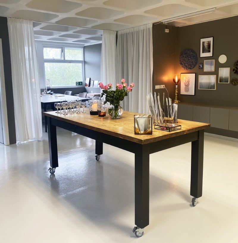 „Í rýminu var áður saumastofa en það voru rifnir niður veggir, múrað, slípað, sparslað og pússað auk þess sem veggir og gólf voru máluð. Það er skemmtilegt að geta sagt frá því að við gerðum nánast allt sjálfar. Nú erum við komnar með glæsilegt rými sem verður gaman að skapa í,“ bætir hún við.