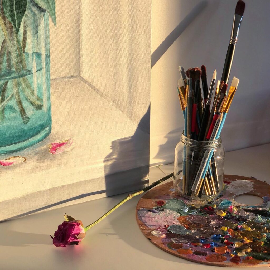 Allt frá barnæsku hefur Tanya verið að mála og búa til allskonar listmuni – fjölskyldu sinni til mikillar ánægju. Hún hafði aftur á móti verið í nokkurra ára pásu frá sköpuninni þegar covid-leiðindin hálfpartinn neyddu hana til að taka upp þráðinn á ný. Þá fékk eiginmaður hennar nóg af kvartinu í henni, eins og hún segir sjálf, og keypti fyrir hana alls konar listföng og fleira svo að hún hefði eitthvað fyrir stafni og þá var ekki aftur snúið. Listakonan Tanya var endurfædd og öflugri en nokkru sinni fyrr.
