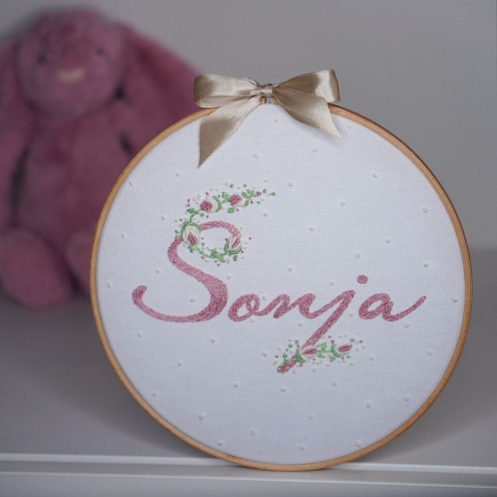Tanya hefur stofnað Instagram-síðu, @lulu_handverk, til að halda utan um handverk sitt, þar sem fólk getur pantað persónulegan útsaum fyrir börn.