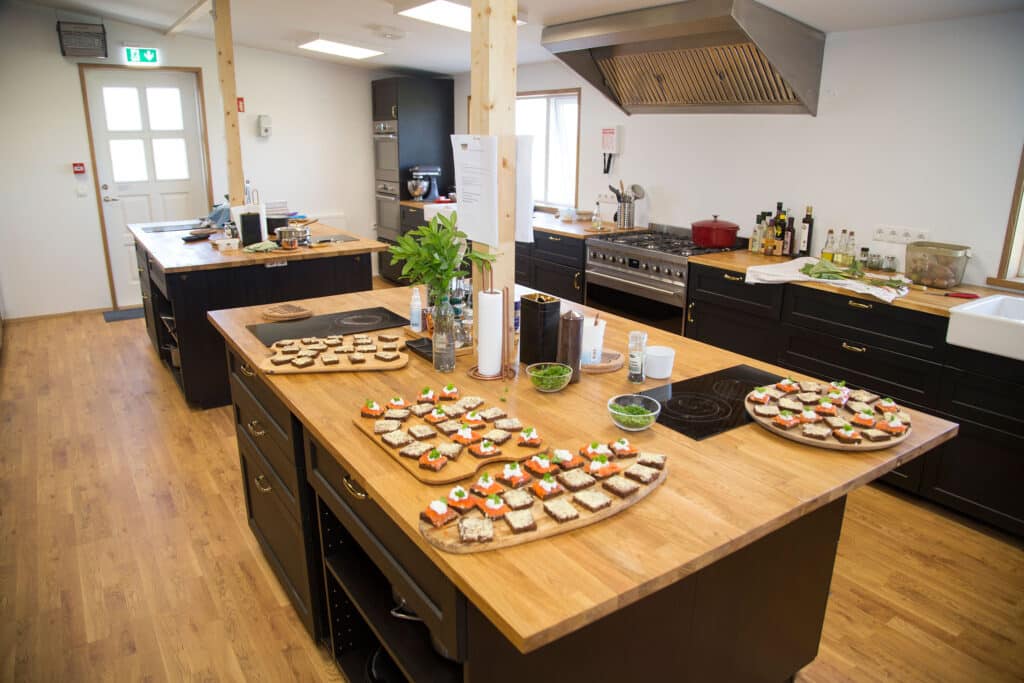 Gestir kynntu sér þannig annars vegar glæsileg húsakynni og starfsemi nýs matarupplifunarfyrirtækis í Oddsparti og hins vegar listmuni og handverk sýnendanna þriggja.