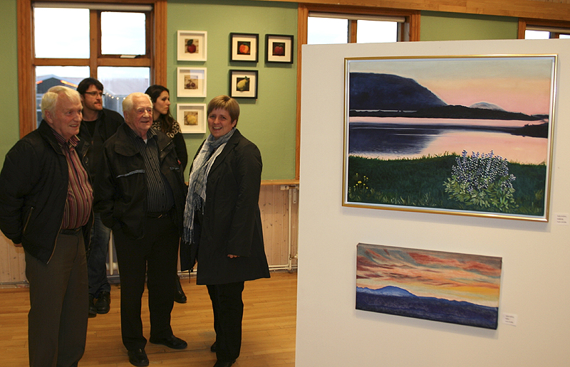 Fjöldi fólks var mættur til að skoða myndir og handverk enda húsnæðið mjög hentugt sem sýningarsalur og markaðurinn í kjallaranum vel uppsettur hjá handverkshópnum.