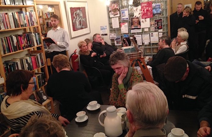 Það var staðið út úr dyrum á upplestrarkvöldi í Bókakaffinu á Selfossi í kvöld þegar sjö höfundar lásu upp úr nýjum ritverkum.