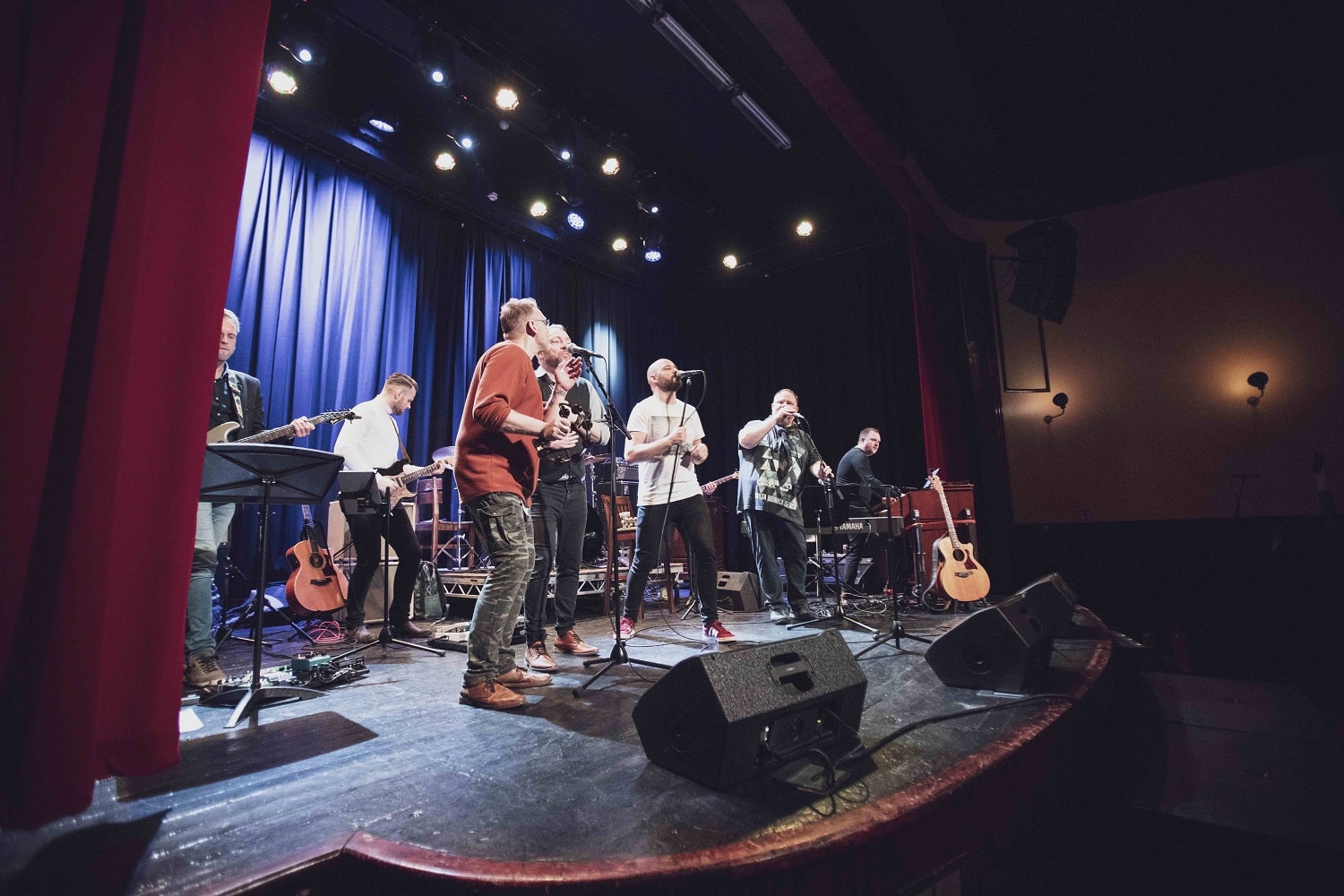 Einar Bárðar og félagar á sviðinu í Bæjarbíói í Hafnarfirði fyrr í vetur. Ljósmynd/Aðsend