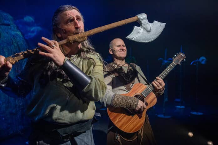 Þarna er á ferðinni drepfyndin sýning þar sem þeir Hjörleifur Hjartarson og Eiríkur Stephensen hlaupa meira en hæð sína í öllum herklæðum í gegnum skrautlegt persónugallerí Njálu. Við sögu koma taðskegglingar, hornkerlingar, kinnhestar, kartneglur og þjófsaugu svo fátt eitt sé nefnt.