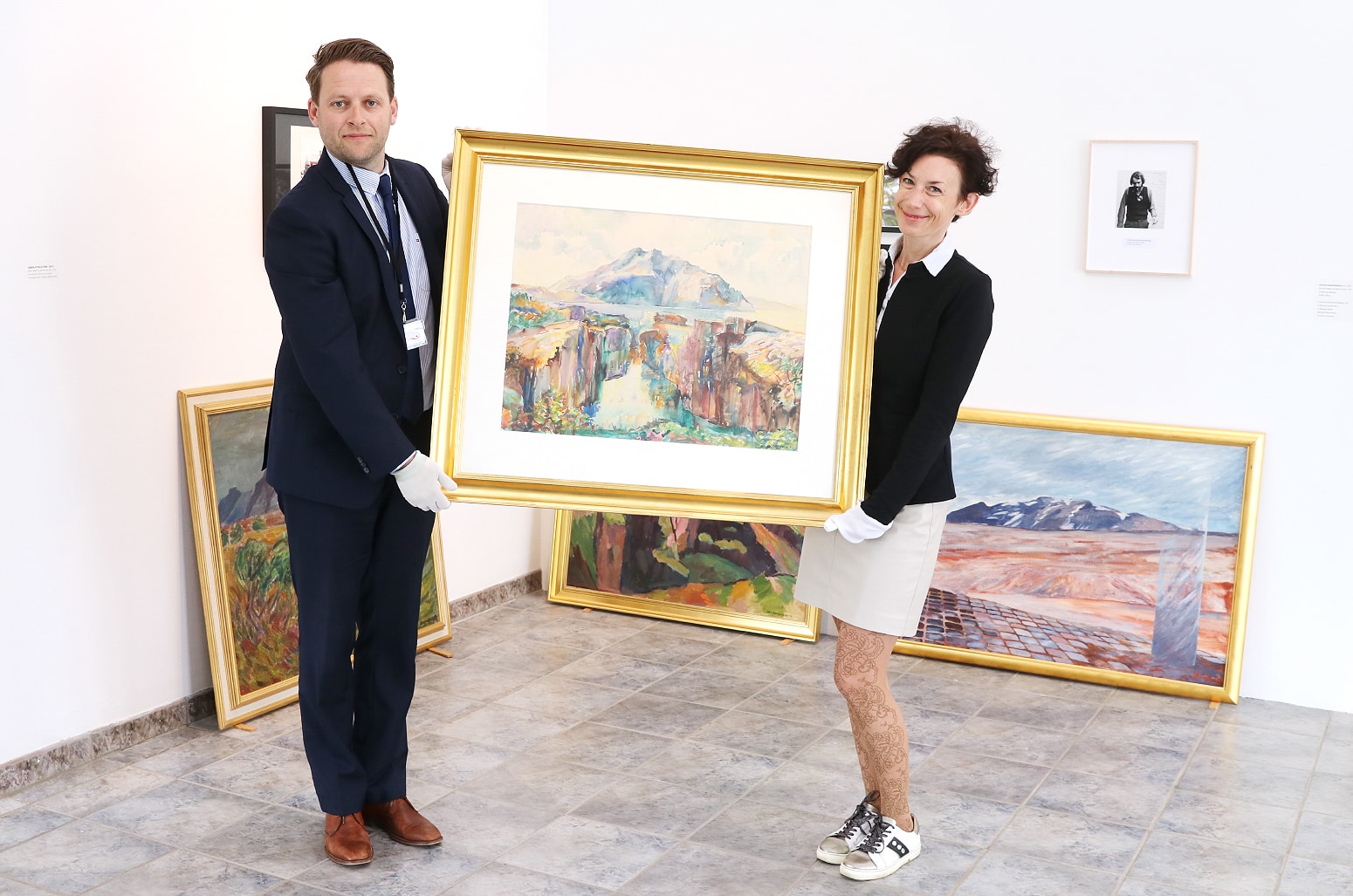 Zsóku Leposa, verkefnastjóri safneignar hjá Listasafni Árnesinga, var himinlifandi þegar hún tók við gjöfinni í morgun.