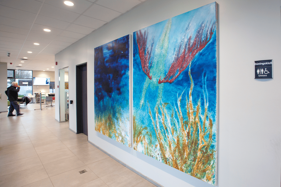 Á dögunum gaf Guðrún Arndís Tryggvadóttir myndlistarmaður Sveitarfélaginu Árborg málverkið Kafarann, sem nú hefur verið sett upp í Sundhöll Selfoss.