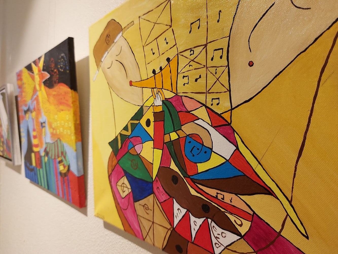Sigurður er þekktur fyrir steinakarlana sína en hann byrjaði listaferilinn á að mála steina. Í dag málar hann einnig á striga og má fjölda litríkra og fallegra mynda eftir Sigurð á sýningunni í Listagjánni.