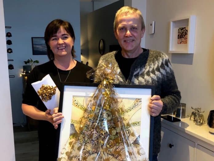 Þeim hjónum voru afhent verðlaunin um síðustu helgi og var verðlaunagripurinn að þessu sinni glæsilegt verk eftir Ágústu Ragnarsdóttur sem hannaði það sérstaklega með þau hjón í huga. Að auki var þeim fært gjafabréf á Hendur í höfn.