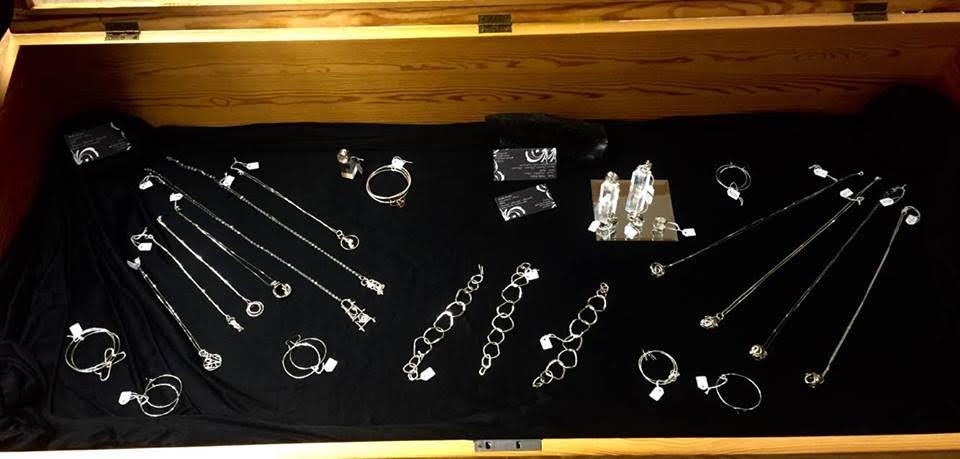 Þórdís Þórðardóttir sýnir nú silfurskart í Bókasafni Árborgar á Selfossi. Sýningin er sölusýning.