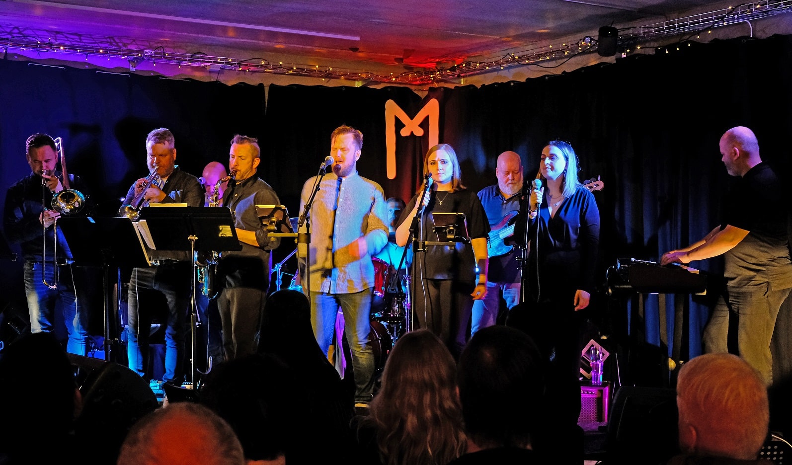 „Það hefur verið okkar reynsla að sitjandi tónleikar ganga sjaldnast upp, þó það sé planið í upphafi. Þessi tónlist og þessi taktur virðist laða fólk í sveiflu. Og það er bara hið besta mál. Enda þegar þessi 10 manna hljómsveit fer af stað verður lítið stoppað.“