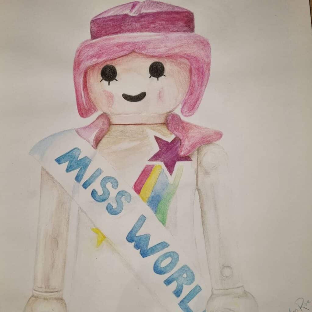 „Það er mjög misjafnt hvað ég er lengi að teikna hverja mynd en þessar sem fólk fær að sjá, taka mig marga daga, upp í vikur að gera. Myndir sem ég geri á skemmri tíma fær bara skúffan mín að sjá. Lang mest nota ég bara ódýra blýanta. Ef ég nota liti þá eru það vatnslitatrélitir frá Faber-Castell. Ég vil ekki eiga of mikið af allskonar dóti, áskorunin er að nota bara það sem ég á til.“