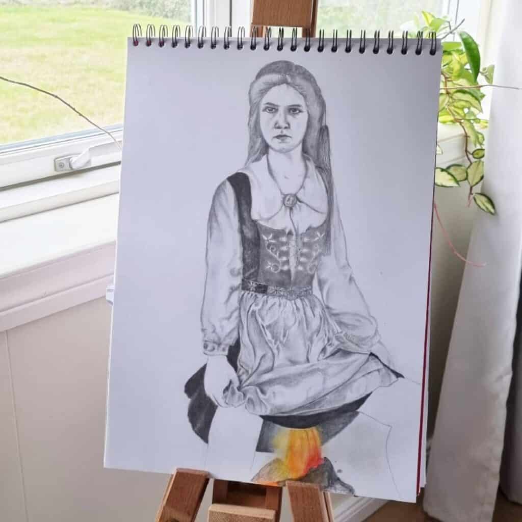 „Ég fór á námskeið hjá Myndlistarskóla Kópavogs þegar ég var barn, sótti í að taka myndmenntatíma í grunnskóla og FSu eins og ég mátti og gat. En svo er mamma myndmenntakennari að mennt, svo ég er búin að vera í einkatíma í myndlist alla ævi. Það hlýtur að telja.“