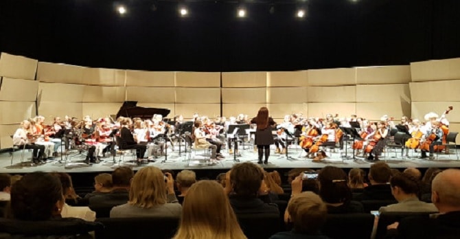 Á strengjamótinu stilla 250 strokhljóðfæranemendur af öllu landinu saman strengi sína. Mótinu hafði verið frestað um tvö ár vegna samkomutakmarkana en nemendurnir, sem eru á aldrinum 7-17 ára, komu á Selfoss í gær og hafa æft af kappi fyrir stórtónleikana í kvöld. Þar munu fjórar stórar hljómsveitir spila undir stjórn fjögurra stjórnenda, en það eru Örnólfur Kristjánsson, Kristján Matthíasson, María Weiss og Guðmundur Óli Gunnarsson.