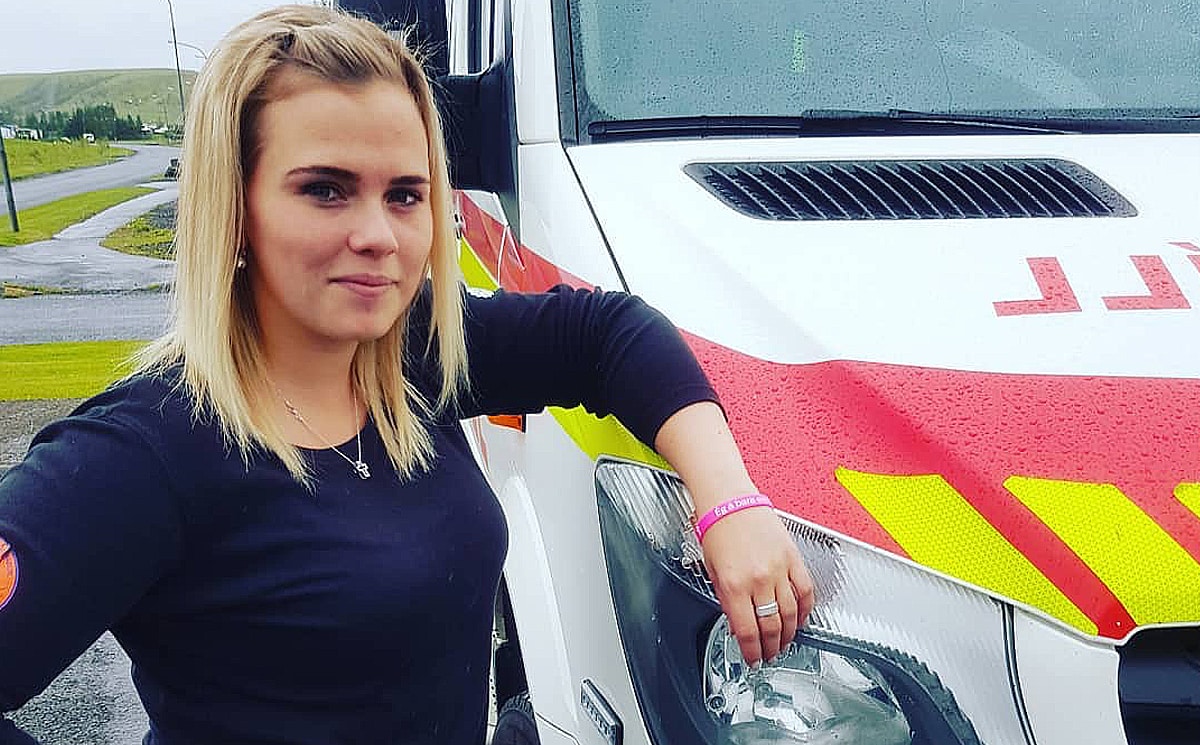 Atvinna: Vinn hjá Heilbrigðisstofun Suðurlands við sjúkraflutninga og þjálfa fimleika hjá Umf. Heklu.